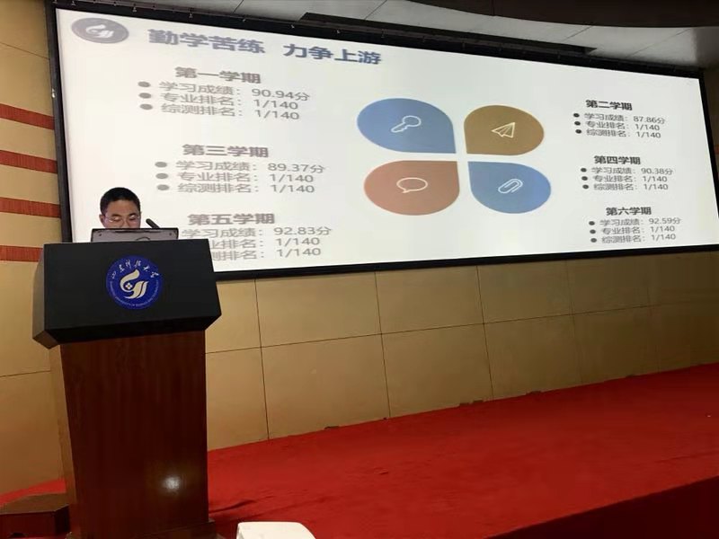 土木工程16-6班的高佳丰成绩位列专业第一,曾获国家奖学金、国家励志奖学金,以扎实的基本功和坚实的毅力,在学习之余不断提升自我,获得了美国大学生数学建模竞赛一等奖、全国大学生“互联网+”创新大赛二等奖等国家级奖项6项,山东省大学生物理竞赛二等奖、认证杯数学中国数学建模二等奖等省级奖项十余项,发表论文5篇。担任pg娱乐电子游戏官网入口防灾减灾大学生党员讲师团团长,在德州、莱芜、日照、济宁等贫困地区进行防灾减灾知识的宣讲,并被评为山东省优秀实践个人。高佳丰获得哈尔滨工业大学(深圳)、中国科学院武汉岩土所、华南理工大学和中南大学等“双一流”大学的推免录取资格,现已推免至哈尔滨工业大学(深圳)继续深造。