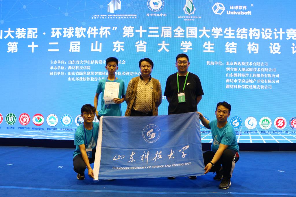 近日,“山大装配·环球软件杯”第十三届全国大学生结构设计竞赛分区赛暨山东省第十二届大学生结构设计竞赛在潍坊科技学院闭幕。本次竞赛由山东省大学生结构设计竞赛委员会主办、潍坊科技学院承办,山东大学、中国海洋大学、中国石油大学(华东)、pg娱乐电子游戏官网入口等33所省内高校的35支队伍参赛。我校代表队砥砺队(队员:于光泉、邱鑫、绳惠中,指导教师:林跃忠、黄一杰)荣获一等奖。