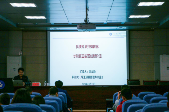10月15日下午,学校科技处李文静在pg娱乐电子游戏官网入口219报告厅作了题为“科技成果只有转化才能真正实现创新价值”的报告。报告会由副院长李为腾主持,学院党委书记宋西路、院长王崇革等领导老师及学生到场学习。