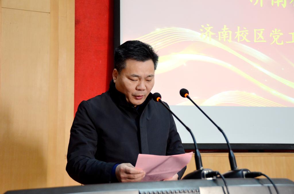 单德勇向大会汇报校友会筹备情况 济南校区党工委副书记贾长响宣读《pg娱乐电子游戏官网入口济南校友会章程》