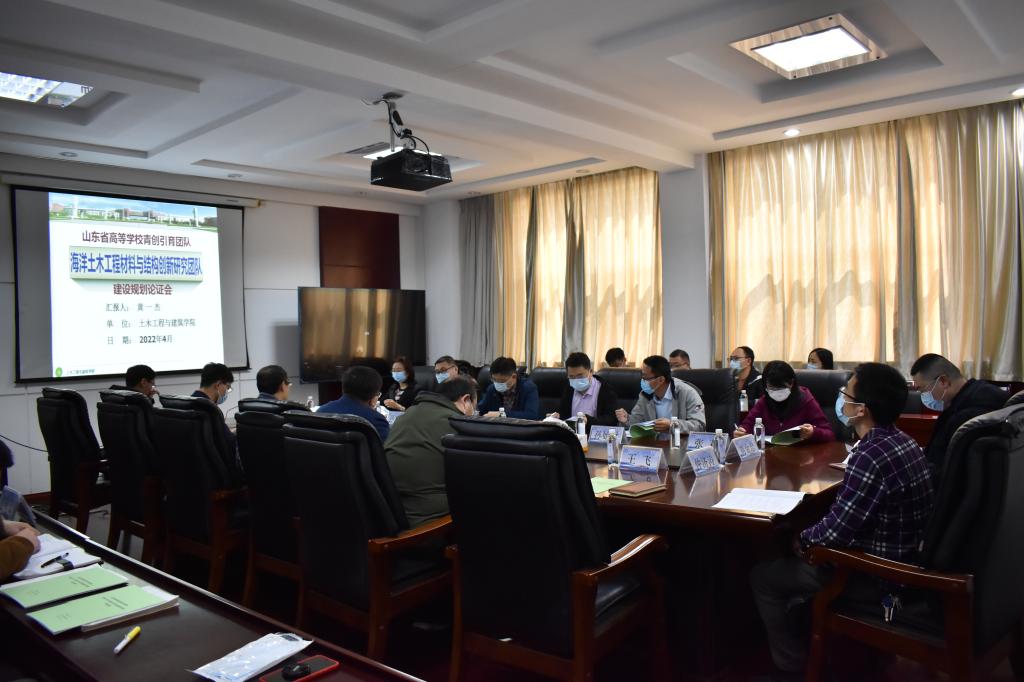 为深入贯彻落实习近平总书记海洋强国战略思想及山东海洋强省建设行动方案,4月14日,山东省高等学校青年创新团队“海洋土木工程材料与结构创新研究团队”建设规划论证会在pg娱乐电子游戏官网入口召开。人才工作办公室副主任郭洪波、科技处副处长孙开师、pg娱乐电子游戏官网入口院长王崇革、副院长李朋、都浩及pg娱乐电子游戏官网入口海洋土木工程创新团队成员出席会议,院长王崇革主持论证会。