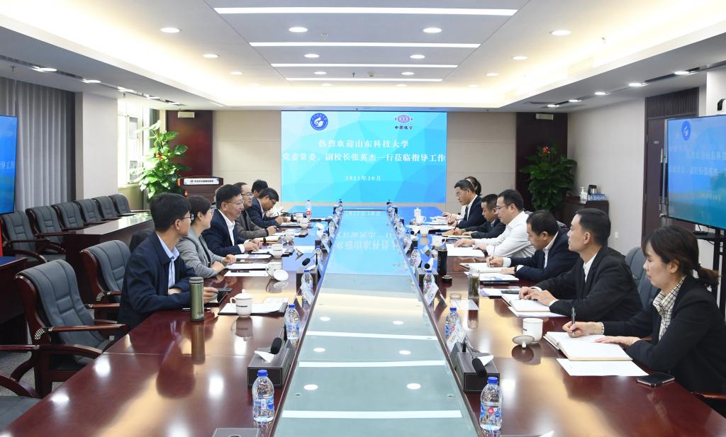在中化学交通建设集团有限公司,党委委员、副总经理、董事会秘书张治国表示,长期以来双方建立了良好的合作关系,今后要进一步凸显各自特色和优势,务实高效,推动双方合作交流更进一步。张英杰指出,学校高度重视与中化学交建集团的合作交流,希望通过校企合作,以点带面,深化产教融合,在人才培养、科技攻关、成果转化等方面进行深度合作,实现互利共赢。会上,双方就共建联合培养基地、人才专项培训等方面展开交流。