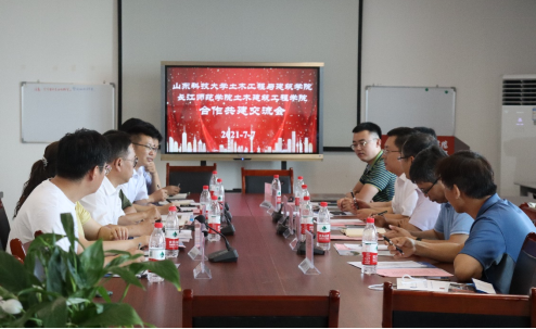 7月7日,pg娱乐电子游戏官网入口院长王崇革,副院长王刚、李朋、都浩,建筑工程系主任王飞,地下工程系主任吴燕开一行赴长江师范学院进行调研交流。长江师范学院副校长袁革、发展规划处处长李伟、土木建筑工程学院党委书记王正平、院长汪时机、副院长孙华银及相关系主任等接待了王崇革一行。交流会由汪时机主持。