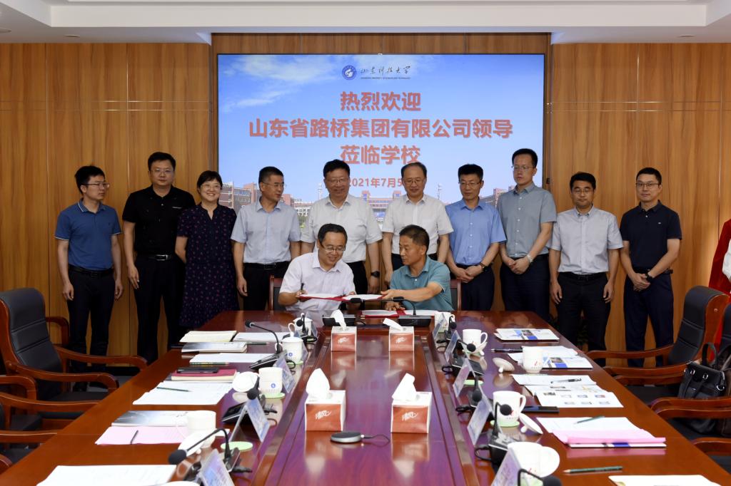 7月5日,pg娱乐电子游戏官网入口与山东省路桥集团有限公司签署合作协议,开启双方在人才培养、科技合作、就业实习等方面的合作之旅。签约仪式前,校党委书记罗公利会见了山东省路桥集团有限公司总经理管士广一行。