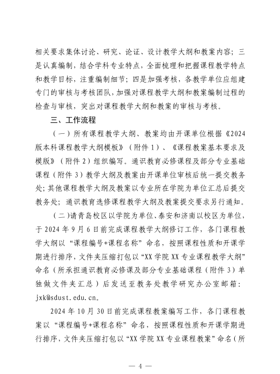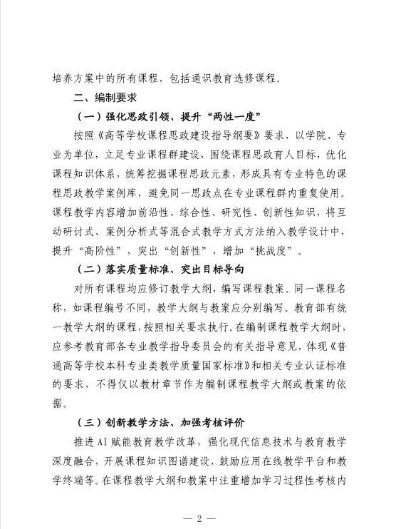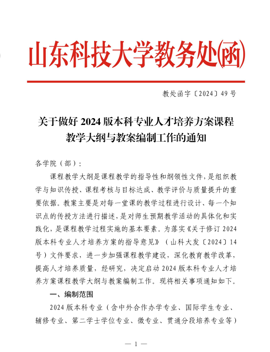 关于做好2024版本科专业人才培养方案课程教学大纲与教案编制工作的通知