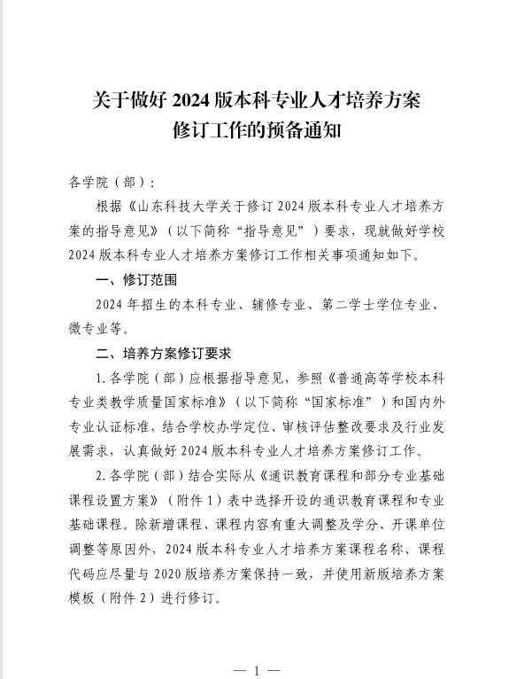 关于做好2024版本科专业人才培养方案修订工作的预备通知