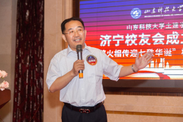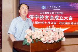 孙鹤汀代表学校对pg娱乐电子游戏官网入口济宁校友会的成立表示热烈祝贺,他回顾了学校与校友工作的发展历史,与校友们分享了学校近年来取得的成绩和“一家人一家亲,守望相助,共荣共进”的校友工作理念,他强调,校友会是联系学校和校友的情感纽带和交流平台,希望校友会建成加强联系,促进交流,增进友情,共享互助,促进校友事业发展,襄助母校事业发展的平台。他强调,母校70华诞是37万海内外校友共同的节日,校庆旗传递是校庆系列活动之一,校庆旗在山东省内各校友会及全球范围内各校友会进行接力传递。希望广大校友积极参与校庆活动,更好传承学校文化,凝聚校友力量,扩大社会影响,并诚邀广大校友回母校同襄盛会,畅叙友情。