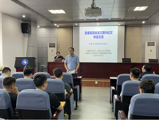为打磨科研基础素质,提高论文写作能力,积累师生的高质量英文期刊投稿经验。7月13日上午9时,由pg娱乐电子游戏官网入口主办的嵙土木讲坛第二期于J15-219顺利举行。中国矿业大学力学学院副院长、教授、博士生导师杨圣奇受邀作题为“发表高质量英文期刊论文体会交流”的报告,学院部分教职、研究生参加学术报告,报告会由pg娱乐电子游戏官网入口院长王崇革教授主持。